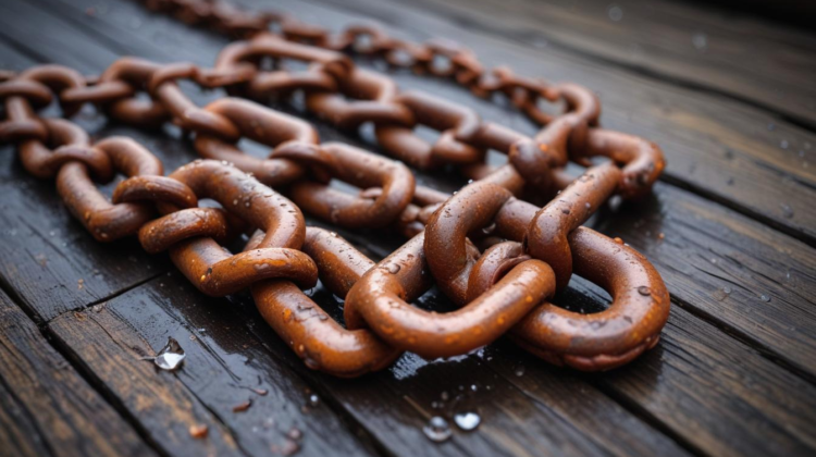Zusätzlich beeinflussen die Umgebungsbedingungen die Rostbildung. Ketten, die in salzhaltigen Umgebungen, wie Küstenregionen, gelagert werden, sind besonders anfällig für Rost, da Salz die korrosiven Eigenschaften von Wasser verstärkt. Auch der Kontakt mit Chemikalien, wie Schmiermitteln oder Reinigungsmitteln, die aggressive Inhaltsstoffe enthalten, kann Rost verursachen. Ein unzureichender Schutz durch geeignete Öle oder Lacke begünstigt ebenfalls die Bildung von Rost, da das Metall ungeschützt bleibt und anfällig für Umwelteinflüsse ist.